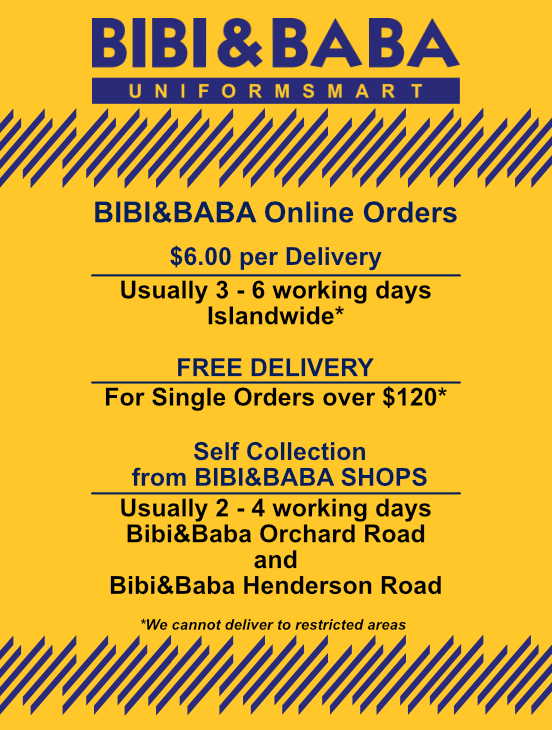 *Alexandra Primary, Cantonment Primary, New Town Primary and ISS International school uniforms are only available at our Henderson Road Retail Shop.