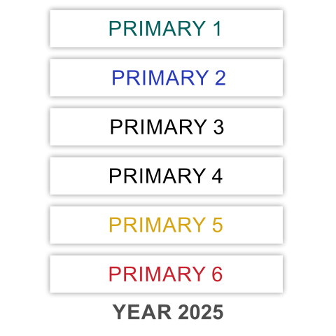 The ACS Primary name tags are colour coded to each student cohort by year of entry, and the colours do not change as the cohort advances through the years from Primary 1 through Primary 6.